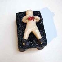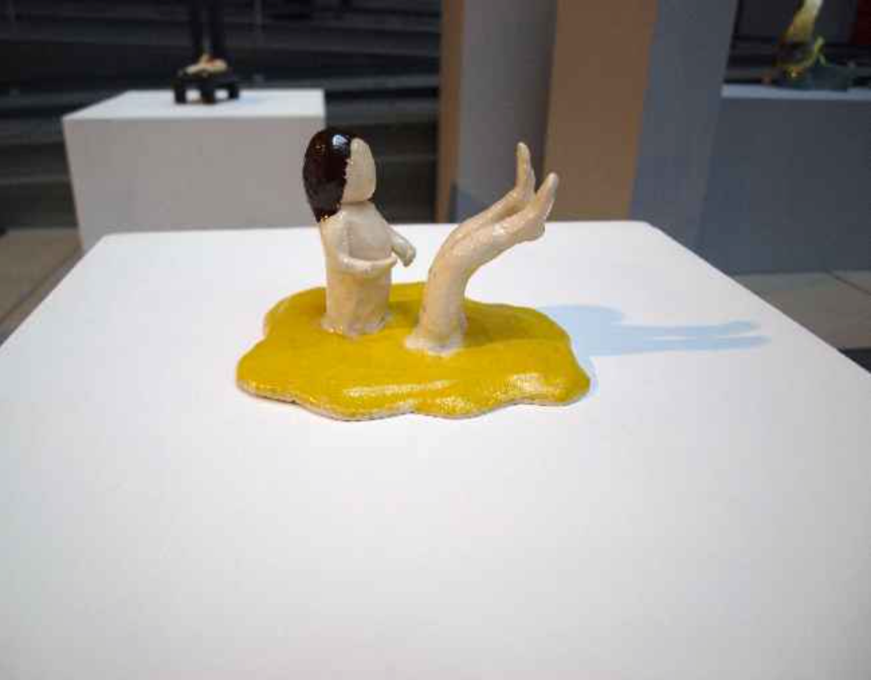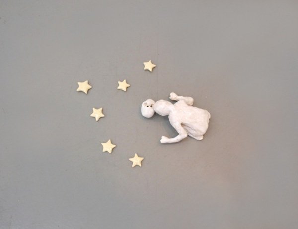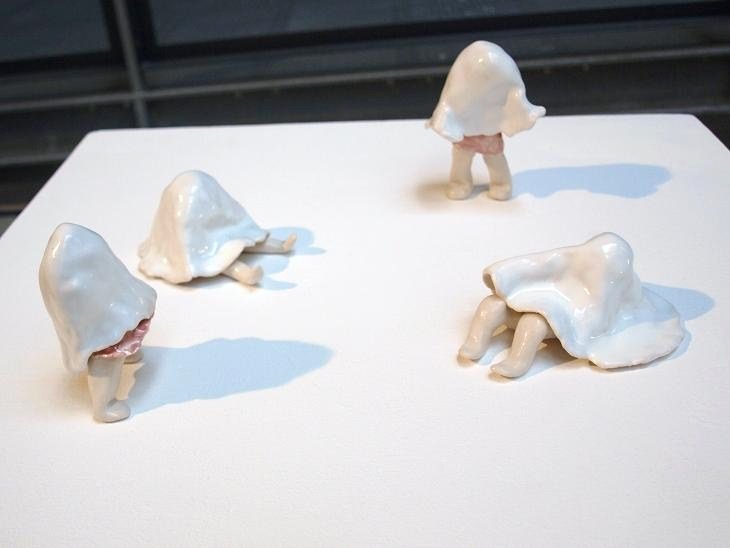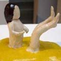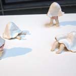 このセラミックで出来た小さな作品群は、時に空想であり、同時に自分の生活の中から着想を得た、物語の断片を表現しています。