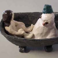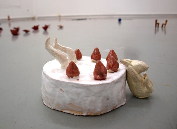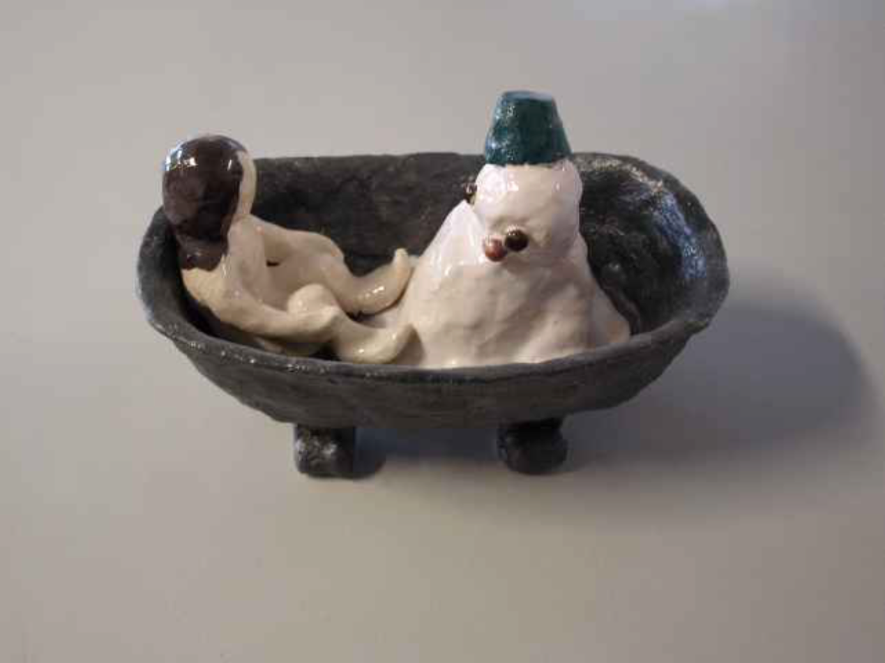 The little ceramic pieces represent fragments of narrative both imaginary and inspired by my life.